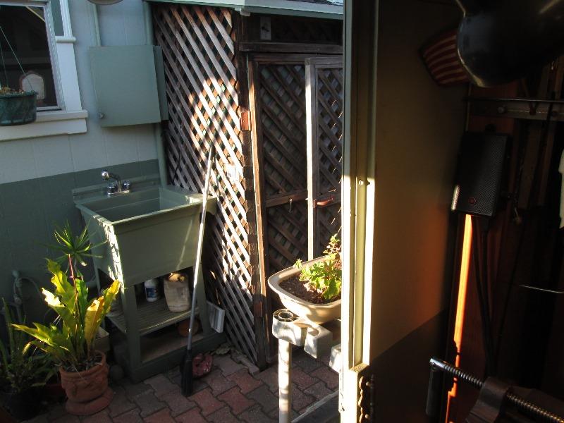 New window allows much needed light under shelf- bonus. I need to turn fitting like other outlet for new hose reel so it can stay plugged in. However would put hose in front of on/off switch. Hmm think a 45° ell between hose end and male quick coupler would work-details.