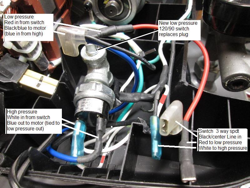 Likely replace cut in/out pressure valve to lower tank pressure. I don't need the volume that 175# offers, I'd rather it ran more. Seriously think as this uses simple screw in switch is to add tee and 2nd lower switch. Use a SPDT switch to select which pressure switch controls. Either 175# for framing nailer or general outside use, 125# for in shop use. hmmm Add selectable lower pressure switch