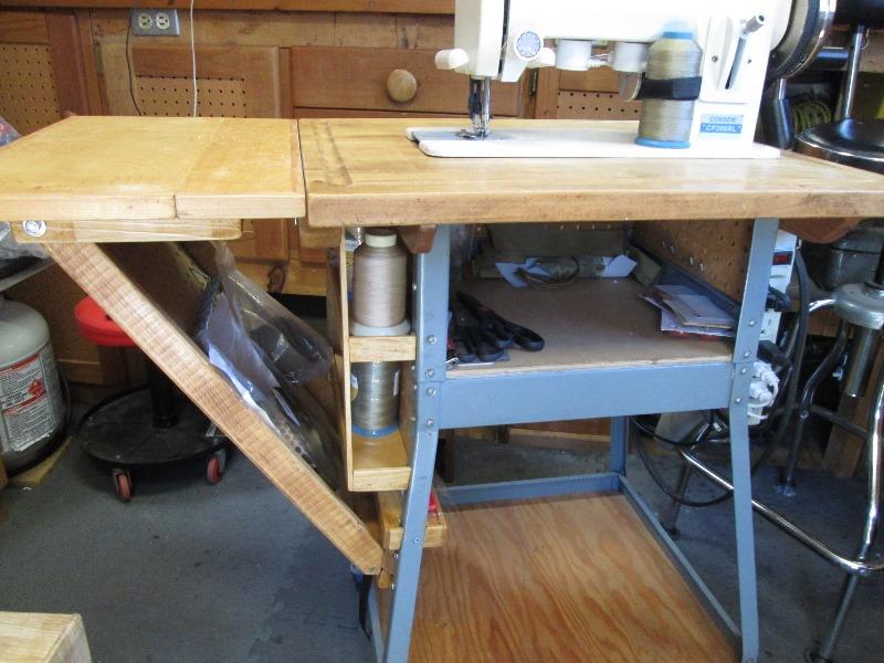 And machine stored, leaf down. Not planned, took a bit more than I thought but well worth the effort. On to Add leaf locking latches and 4" casters Back to Consew sewing machine tool mods section Back to Shop tool mods section