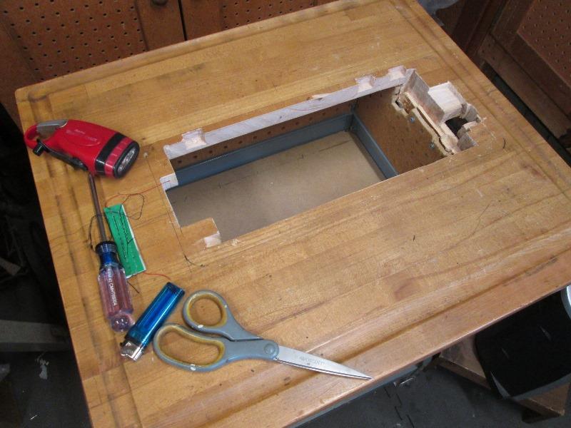 Modify Harbor Freight Workstation Table #46725 for sewing machine. 2022- rework this table to use for walking foot sewing machine Original build see Worktable.htm