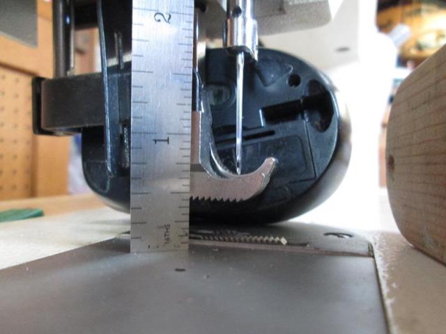 And we have lift off Angle a bit skewed, actually lift is about 3/8". Now that this is done much easier to slide material under foot. Note: I also realized after the fact, though didn't verify, it might be simpler to remove the actuator plate and drill it for screw instead of the lift arm. Worth looking at, need to ensure screw in the actuator plate wouldn't interfere with its travel. Lift arm is pretty flimsy, difficult to drill without bending. The actuator plate is much thicker, less disassembly.