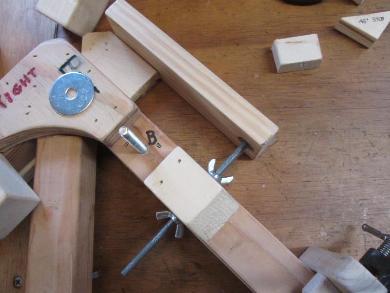 And extending clamp faces. (may also help against splitting along grain-these should have been plywood) Added side guides for the clamp arms.