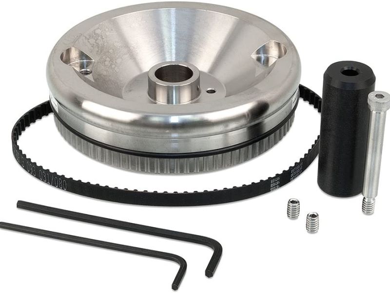 Not inexpensive but awesome. Complete as shown to swap out factory wheel. One nice thing about these cheap machines is interchangeability of parts and so upgradeable. This fits with no modification on my Consew machine. 2 options for mounting, 1: reusing existing friction clutch or 2: using included set screws for positive locking. To start I reused the friction clutch. Allows keeping the bobbin winding without needle running function. Likely I will be changing and locking the wheel to shaft with the set screws, maybe, as I've had machine slip. That's a lot of torque with the larger wheel.