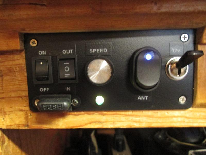 Didn't take long to see moving existing ATX (power supply) toggle switch and radio antenna rocker power switch to panel with new switches would be a bit cleaner. So a little rework needed. Adding an on/off power switch before controller and a fuse on the output. The reversing switch of controller is remote, has an off position but its the output and don't want electronics powered, though slight, when not in use. Adding small pilot on power input just incase, so with 7 units laid it out to see what/how to fit on small aluminum lid I had.