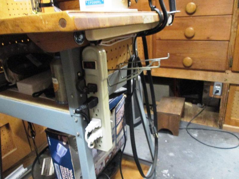 My table has a power strip that everything is plugged into. Securing the cables just keeps everything out of the way. Power strip was used as a means to turn machine on/off. The new system has its own power switch (even though its inconveniently located) so I can turn off machine and still have lights. New controller also has a built in 110v receptacle so you can plug in lights right at machine but I dont use it as power switch also turns receptacle off. My lights have their own switches. When not sewing I turn off machine so I dont accidentally power machine if steeping on pedal inadvertently. All that pointless just my use. IF you have one of these machines and slowing down is goal- I cant recommend this addition enough. It is expensive. Between this motor system and the larger balance wheel upgrade have invested more than machine cost. In use though more than worth it.