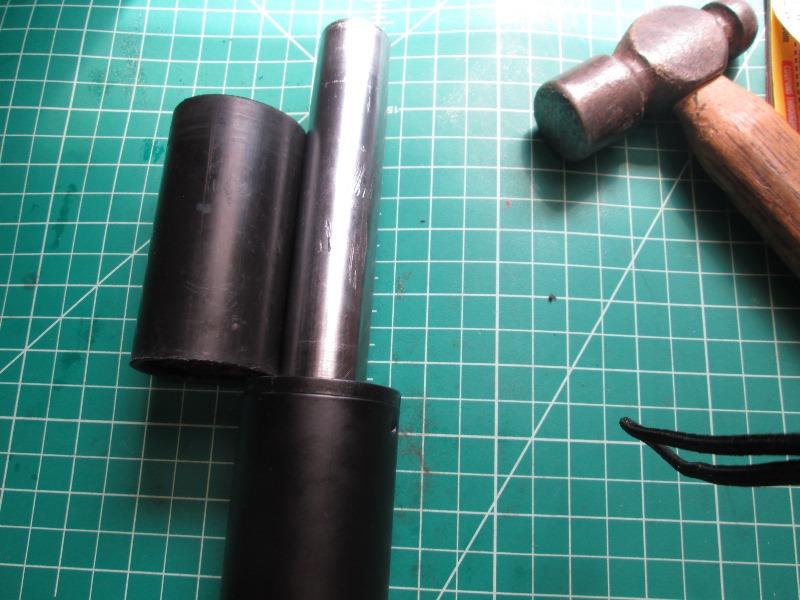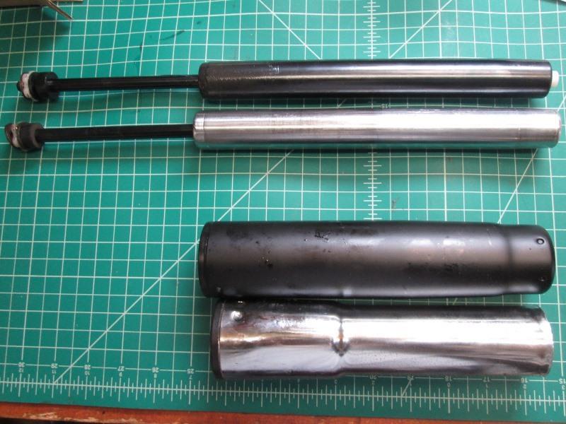 Except for where the taper starts on outer tube they are identical. Both have same plastic top/sleeve inserted in to metal tube that cylinder runs in. The cylinders except black verse chrome (and one works) are identical. After transferring some of the grease off new one and coating old sleeve inserted new cylinder into old tube. Pinned it