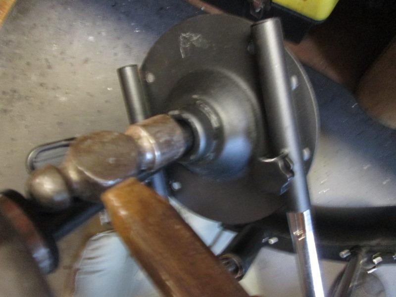 Cylinder arrived. Appear almost identical, except the outer tube and taper where it goes into chair base. Have to try. Removed old cylinder, block of wood and hammer knocking out of base from bottom- dont bend it. Inserted new one...