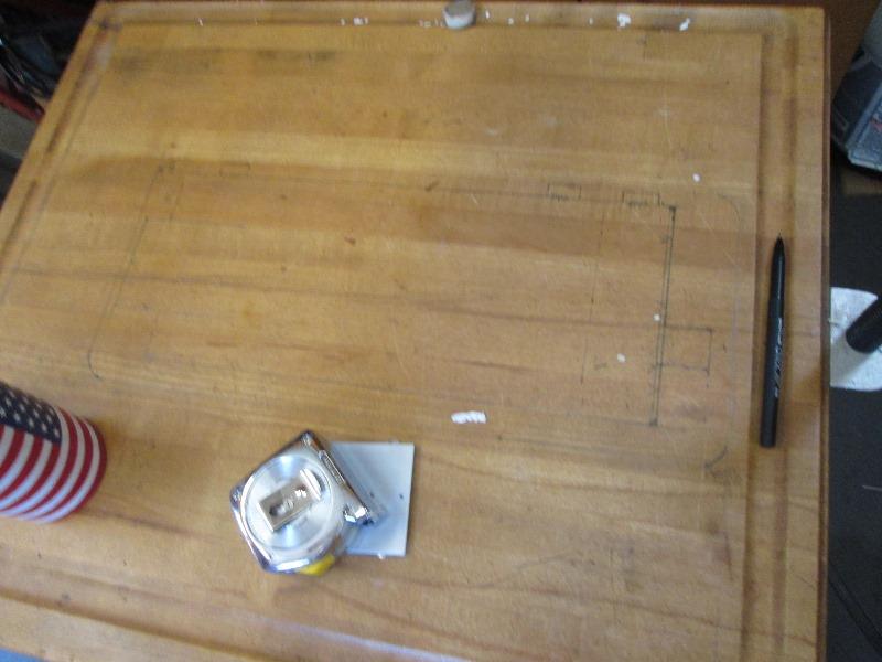 Marking out hole needed for sewing machine. I want to minimize cut out so cut out will be notched to fit machine. Once hole cut is to use router removing about 3/8" so machine recessed and sets flush with table top.