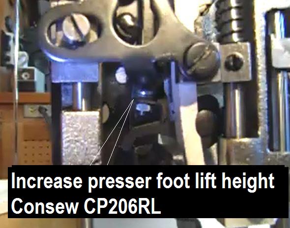 Modify Consew CP206Rl presser foot lift more room under foot.