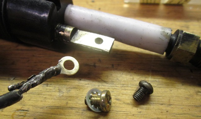 Clean it up a bit. I replaced the screw, reattaching the eyelet with star washers on both sides.