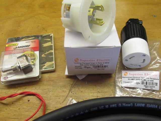 Anyway, parts is parts. The 10amp/240v toggle switch is for torch trigger feed, adding a switch to disable. Having bad luck with recent Leviton stuff and local hardware was going to be almost $55, ordered off internet. Got a Superior Electric YGF169 flanged male twist lock receptacle for the machine and a YGA017F female twist lock for cord.[NEMA L6-30R & L6-30P]. Wall end of cord Ill reuse the junk Leviton 220v plug as mig is 120v. And the "new & improved" (35' length) of 10AWG SJOOW cord.