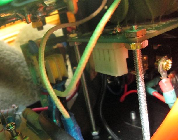 Power cord and air line secured. And, if needed, access to the pilot arc post mounting screws. Will not make getting to or adjusting the points any easier but if post become loose wont need to remove the circuit board to re tighten. Since I had the board out I readjusted the points to .035 gap.