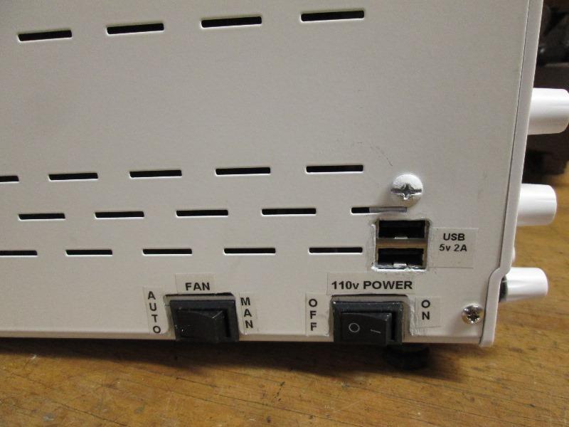 Main power switch moved to side. Not optimum but power switch on the side still easier than rear. Mounted on the bottom flange so cover can be removed. The DC output switch doesn't stop output, only disconnects the positive binding pos (meter still shows voltage but post immediately off). TBD I may reinstall the USB IF I can unsolder case from its board. Insert thru metal cover and resolder board. IF I can unsolder and install usb I may add a 3way switch from the usb port and add a small 0.15 amp HD fan. Switch USB or constant fan if running high loads. That's a big maybe. I don't really need another USB charger but If I can why not. The fan addition I will do. Whether on 3 way switch or just on/off if usb install fails.