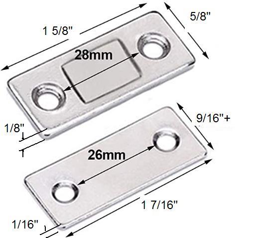 On the doors required removal to carve out back so latch plates set flush. The magnetic plates of catches will grab but this keeps doors fairly close (1/16") to frame. Placement from edge , about 2/3 width of door, pulls lead door flat with main hinged door not trying to accordion out.