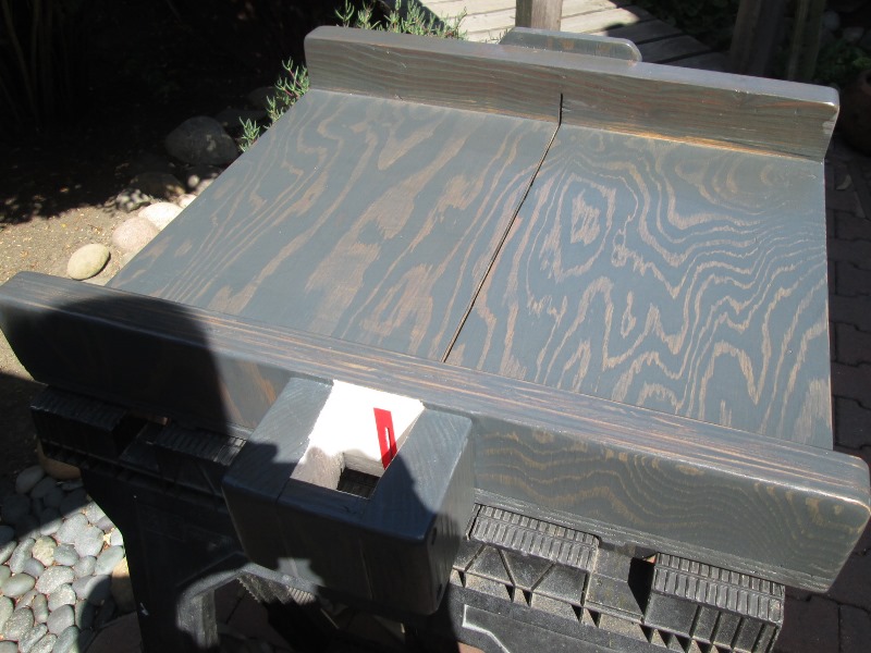 Hadn't planned on documenting, so no details in construction. Here it is finished, stained and drying. A piece of 3/4" plywood. At the back or top fence is piece of 2x4 that holds to halves together once panel split on saw. Its only function is that. At the front is the fence that material is cut against. It also holds 2 halves of panel together once cut but its function is critical, holding materials square to saw blade. The procedure is building sled but the front fence is not permanently attached until panel is run the saw and verify it is square to cut. Simply adding screw to both ends, cut. check square. If needed remove 1 end screw, pivot fence needed amount. Replace screw in new hole and check again. Note once panel is cut the slot will not change, your only pivoting the fence until it is square to it and blade Many very good videos outlining how to verify material cut is square. No- it is not a single cut and checking with framing square. The more time you spend here the more accurate your sled will be. Once you believe its square fully screw fence. You can add as many features, stops, clamps etc as you want.