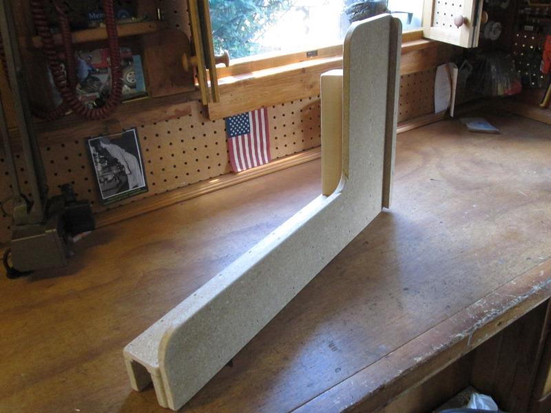 Building a simple jig to cut greater angles on table saw![]() Need an easy means to re-cut leveling ramps with greater angle (or less). Used for cutting tenon joints or creating raised panel doors, this jig also easily allows holding workpiece in a vertical position to cut angles table saw otherwise cant. Youtube supplied an unlimited variety of jigs and construction methods. For this I basically followed the simplest I could find with some features of others. Mostly large enough at one end to clamp material vertically, a good length for longer pieces. Simple manual clamping. Material on hand was 1/2" particle board. Probably worst choice but what I had.